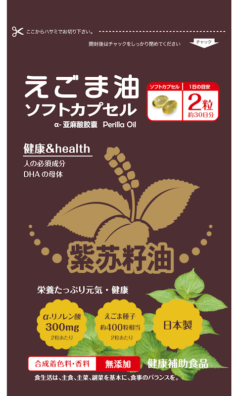 えごまオイル、ゼラチン/グリセリン、酸化防止剤(ビタミンE、ビタミンC)